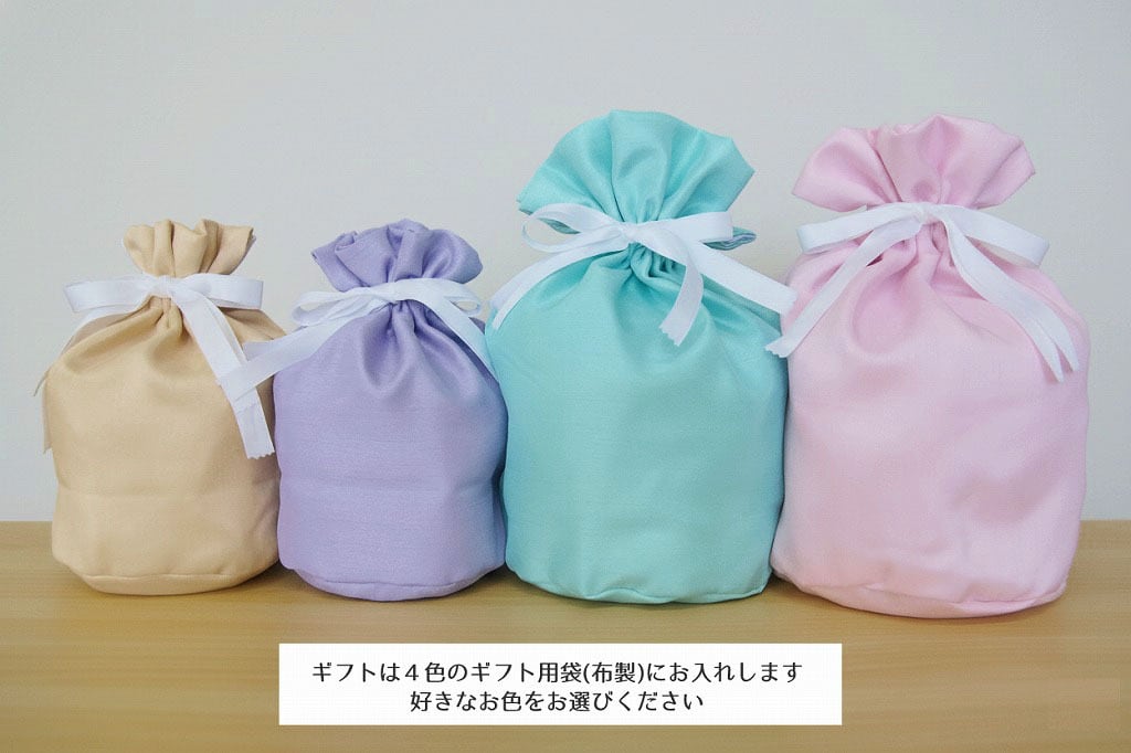 4色のギフト用袋(布製)にお入れしてお送りします。
